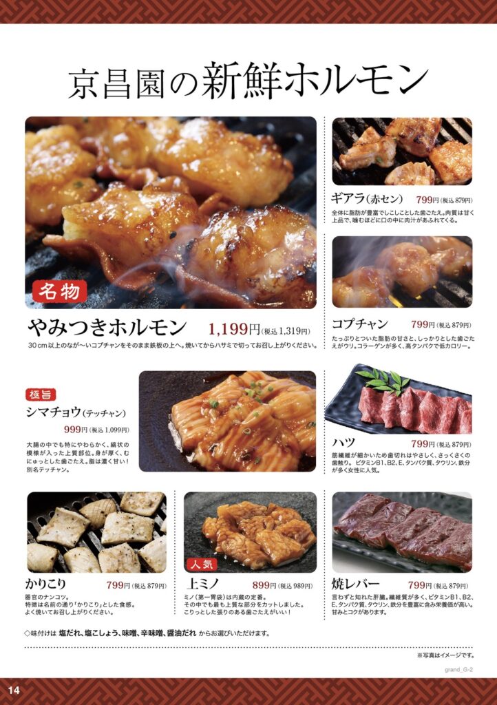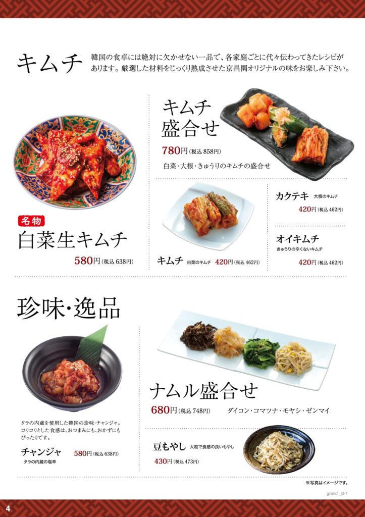 素材を最大限に活かした調理方法と、お客様にご満足していただけるメニューをご用意しております。 京昌園は焼肉だけではありません! 焼肉以外のサイドメニューからデザートまで、全ての料理でご堪能して頂けると思います。 ※富士みなみ店にはお子様のガチャガチャはございません。 ドリンク 詳細ページへ ランチメニュー 詳細ページへ 宴会コース 詳細ページへ お弁当 テイクアウト オードブル 詳細ページへ ららぽーと安城店メニュー 詳細ページへ ららぽーと沼津店メニュー 詳細ページへ 京昌園静岡駅南口店メニュー 詳細ページへ