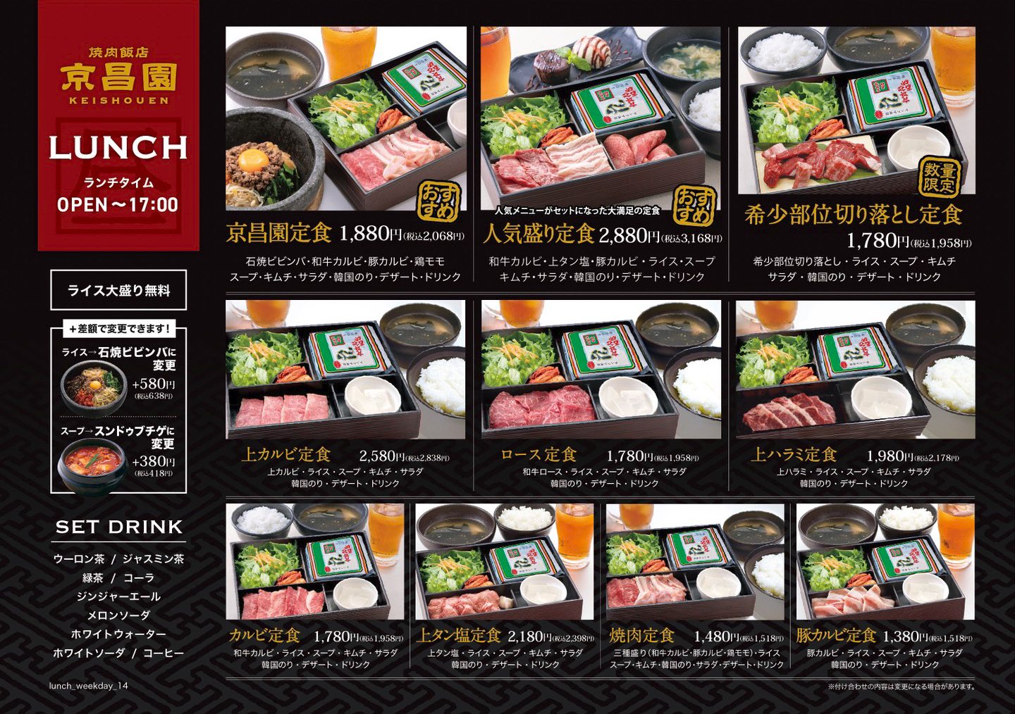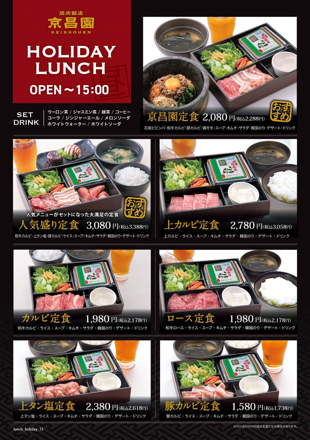 休日/11:00~15:00 - 京昌園 はなれ 日祝日/11:30~15:00
