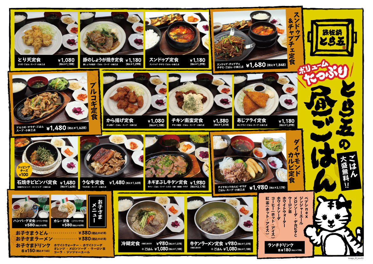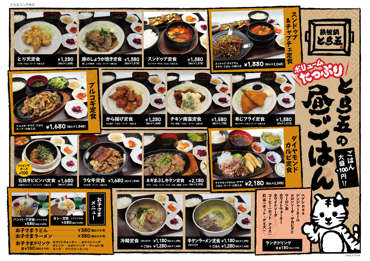 ご提供時間 11:00~15:00 韓国定食【平日】 ランチ【平日】 韓国定食【休日】 ランチ【休日】 ※休日や、年末年始などの大型連休には、ランチメニューの休止・メニュー内容・提供時間が変更になる場合がございます。