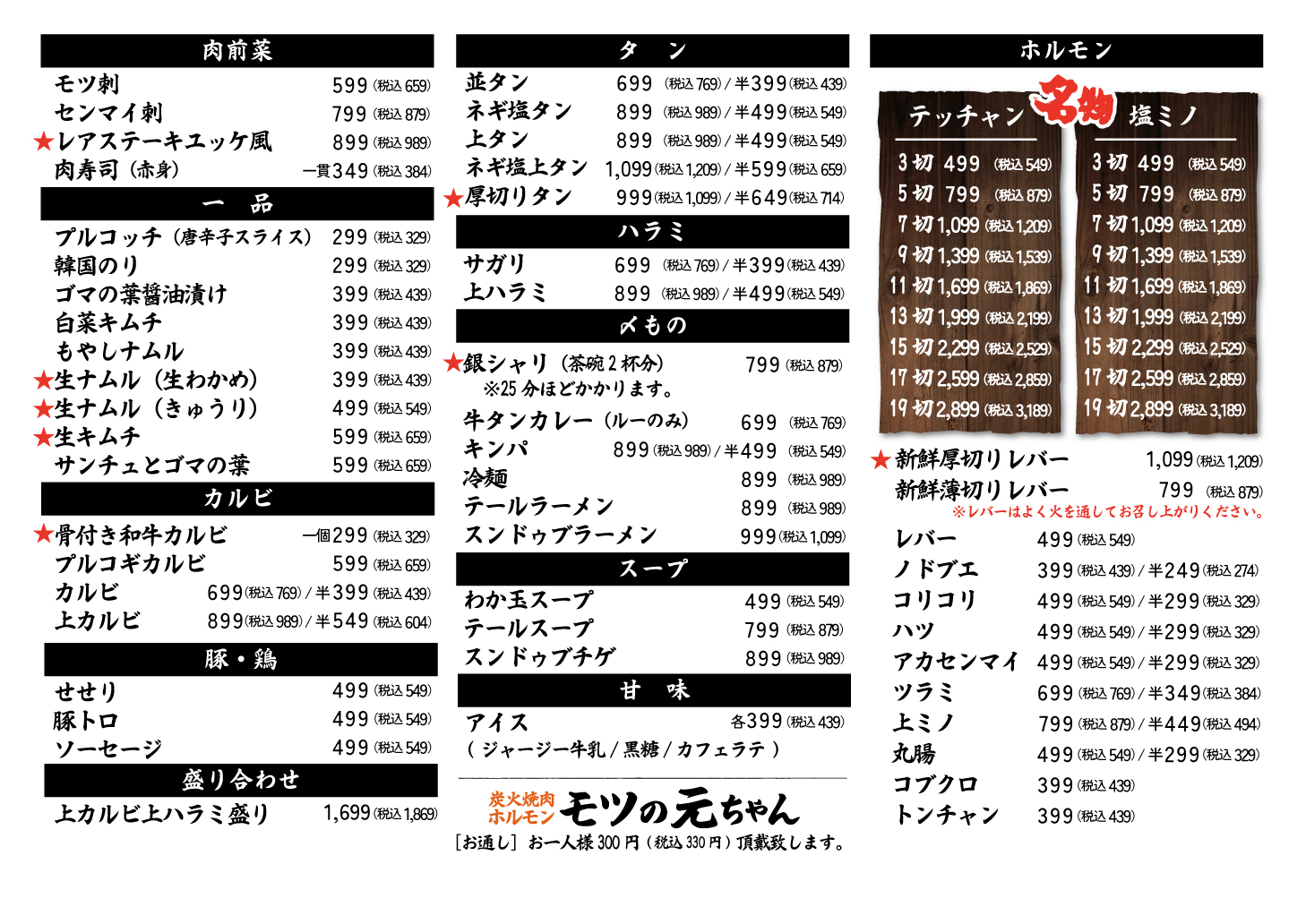 炭火焼肉ホルモン モツの元ちゃん 本店への電話でのお問い合わせ